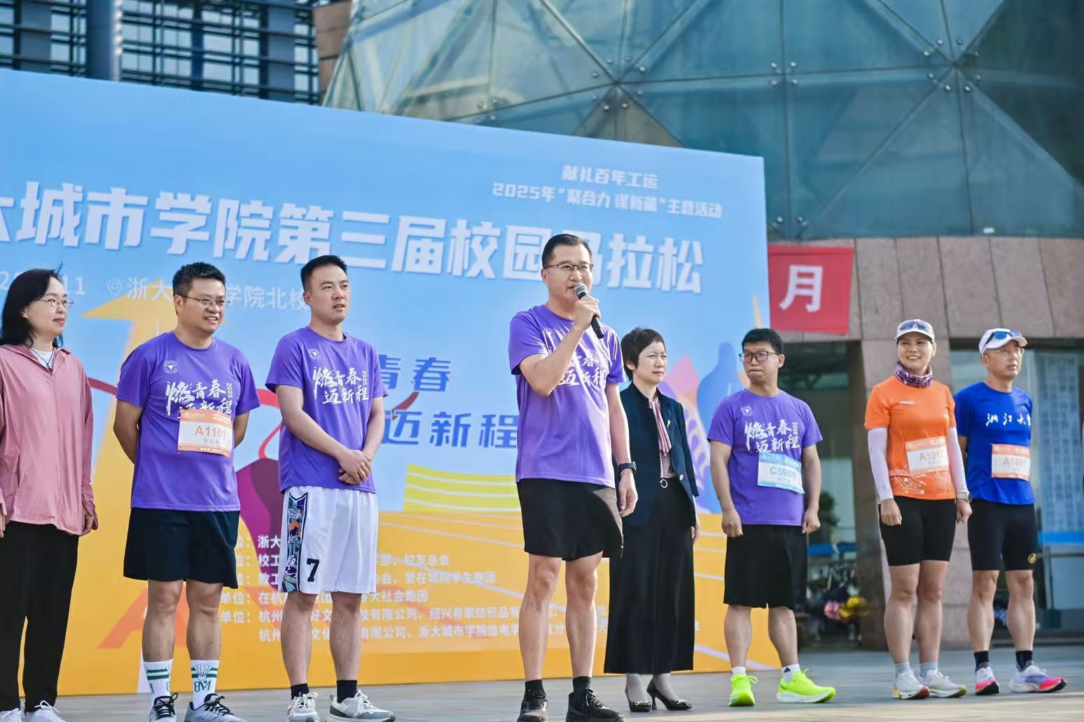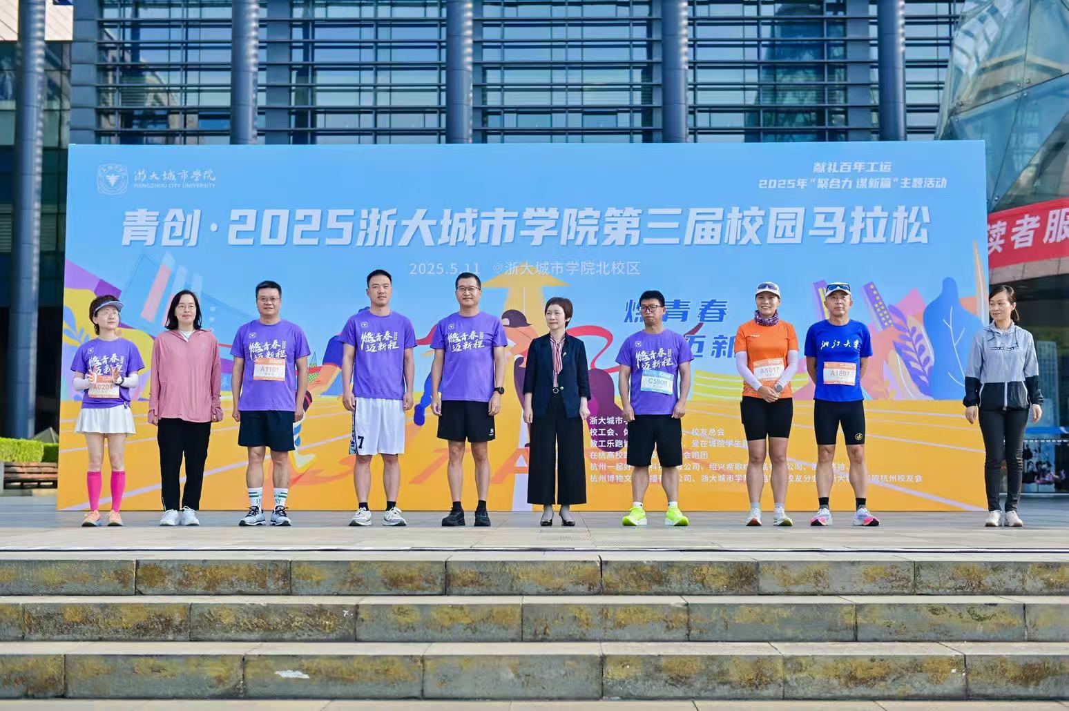 校党委副书记贾秀英出席活动,校工会、体育美育教学部、校友总会相关负责人,教工乐跑协会、田径协会、爱在城院学生跑团、在杭高校跑团以及各大社会跑团参加。